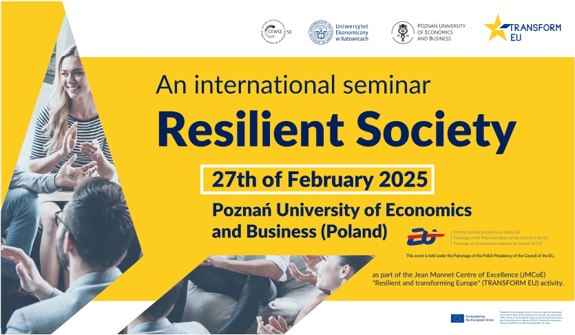 Zapraszamy do udziału w seminarium pt. „Odporne społeczeństwo”, które odbędzie się 27 lutego 2025 r. w godzinach 11.00 – 14.00 w budynku A (sala 236) Uniwersytetu Ekonomicznego w Poznaniu (Al. Niepodległości 10) i online.